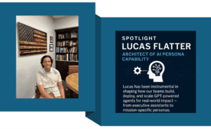 This month, we’re thrilled to spotlight Lucas Flatter, Flatter’s lead developer behind our cutting-edge AI persona capabilities. Lucas has been instrumental in shaping how our teams build, deploy, and scale GPT-powered agents for real-world impact — from executive assistants to mission-specific personas.