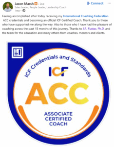 A Leader, and now officially an ICF Certified Coach! Jason recently earned his ACC credential, marking a major accomplishment after 18 months of dedication, learning, and service to his clients. Jason shared heartfelt gratitude to mentors, coaches, and the FLA team—especially J.R. Flatter, Ph.D.—for supporting his journey.